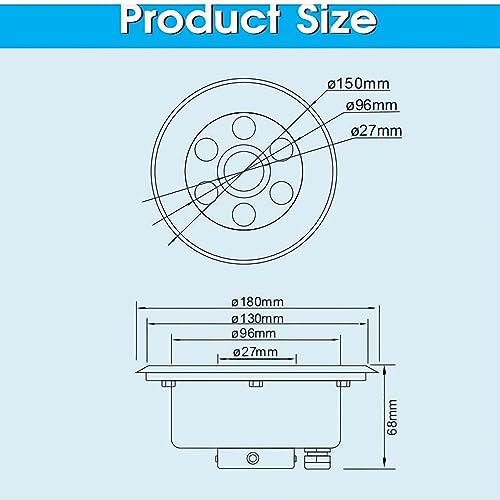 • PROFESSIONAL GRADE - Ultra Durable 304L stainless steel body with a 3/16” tempered glass face and epoxy resin filled core. 12v with 6x 1 volt Epistar LED lights 2700k Rated for 50,000+ hours of use. Waterproof rated IP68 and can be used in or out of water with a 26’ 2 wire cord.