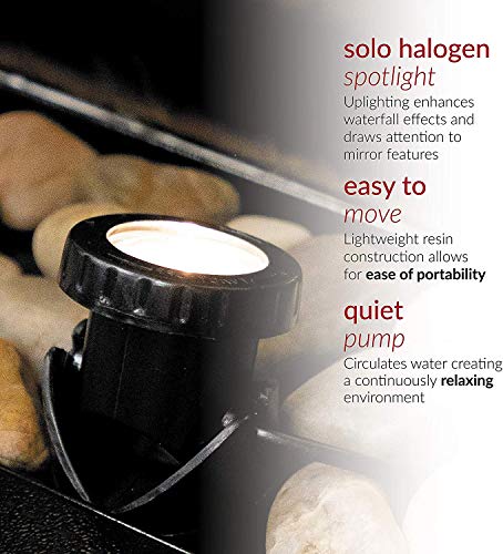 • INTEGRATED SPOTLIGHT: Included halogen light projects onto the waterfall, drawing attention to the soothing ripple of falling water while offering a soft light source