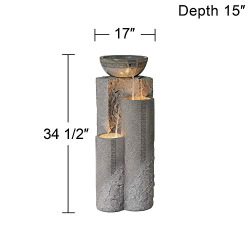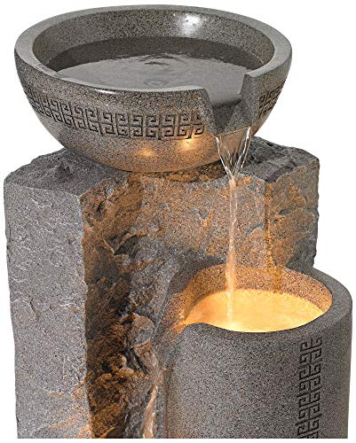 Details: Illuminated from within to create a romantic effect, this modern fountain is a perfect addition to your home or patio. The relaxing sound of cascading water falling from the top bowl into the smaller pillars will soothe away your stresses. The faux marble has a luxurious look.