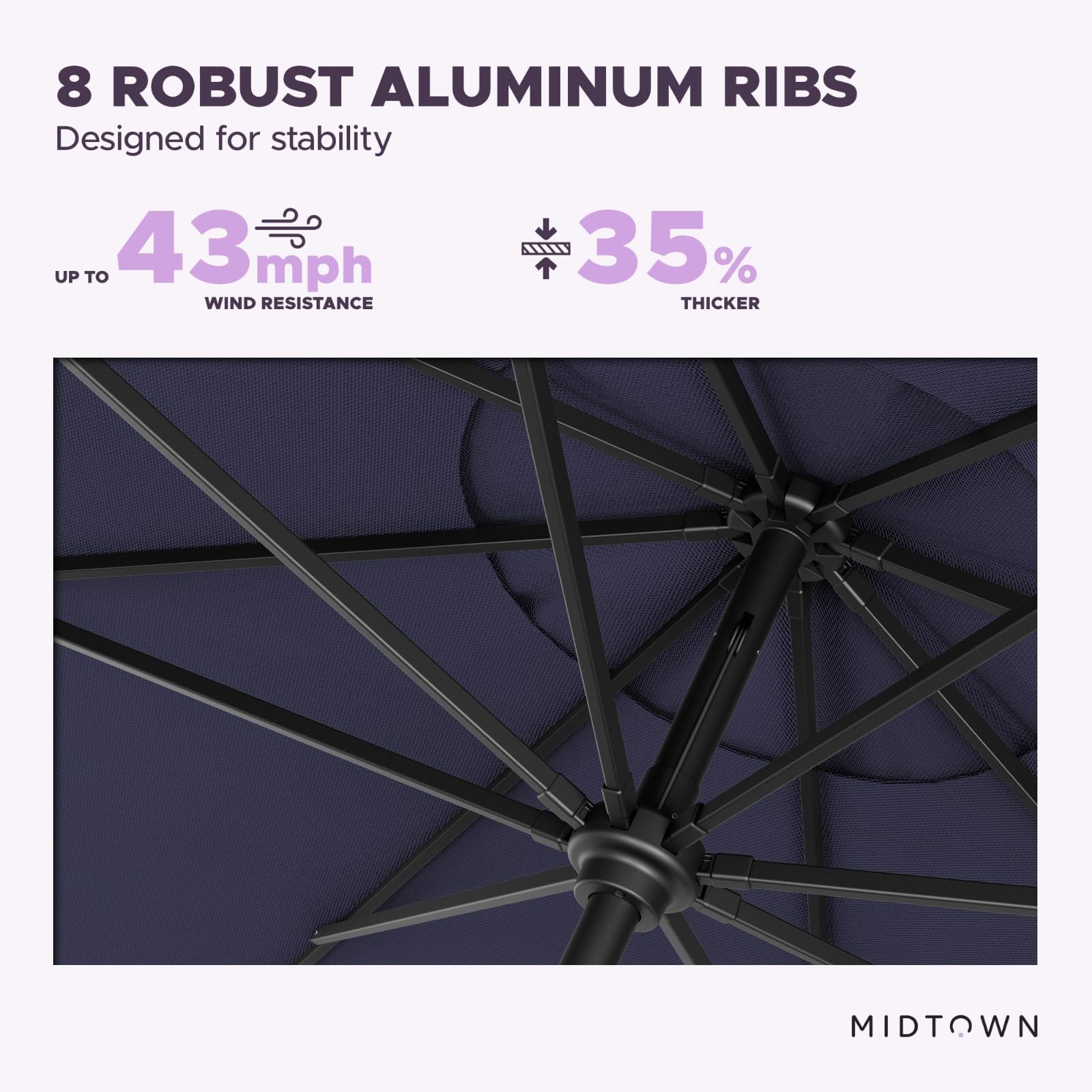 When it comes to quality and longevity, there is no substitute for Midtown Umbrellas' 10-Year-No-Fade - 9 Feet Aluminum Patio Umbrella in Terylast Navy. This sturdy umbrella is made with durable polyester fabric that resists fading, so your outdoor furniture will look great for years to come.