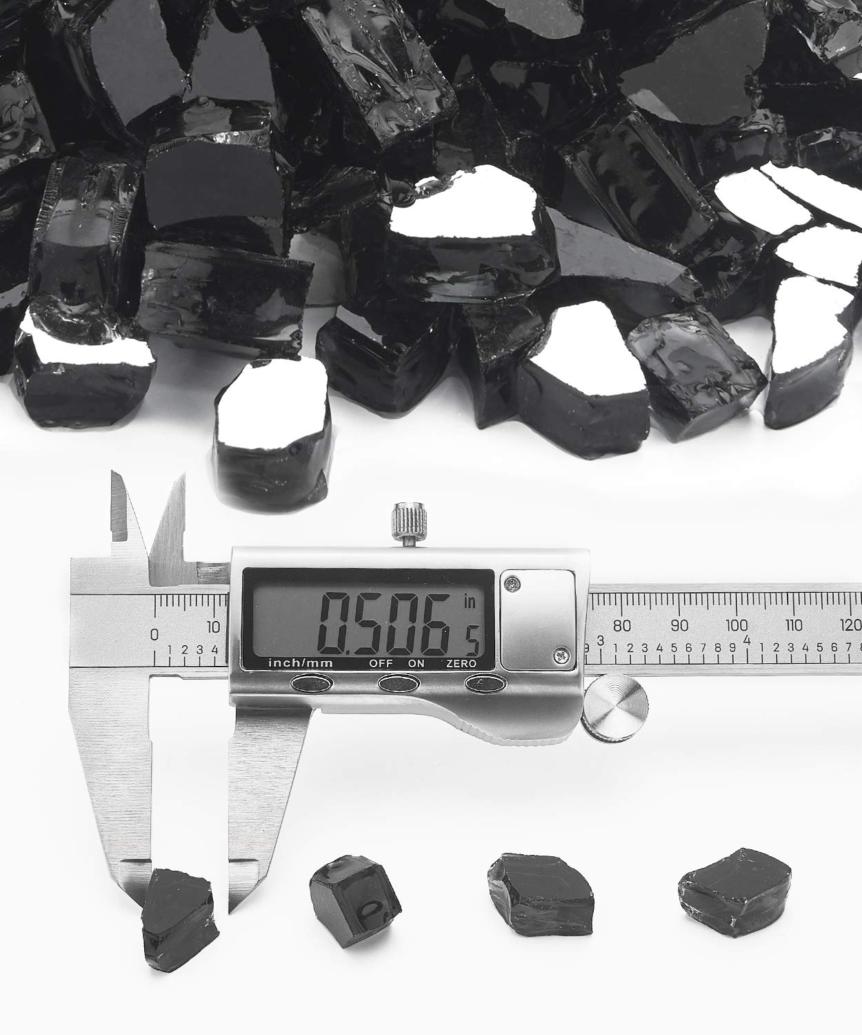 NUPICK 20 Pound Fire Glass, 1/2 Inch Reflective Fire Glass, Fit with Fire Pit Glass and Fireplace Glass, Black