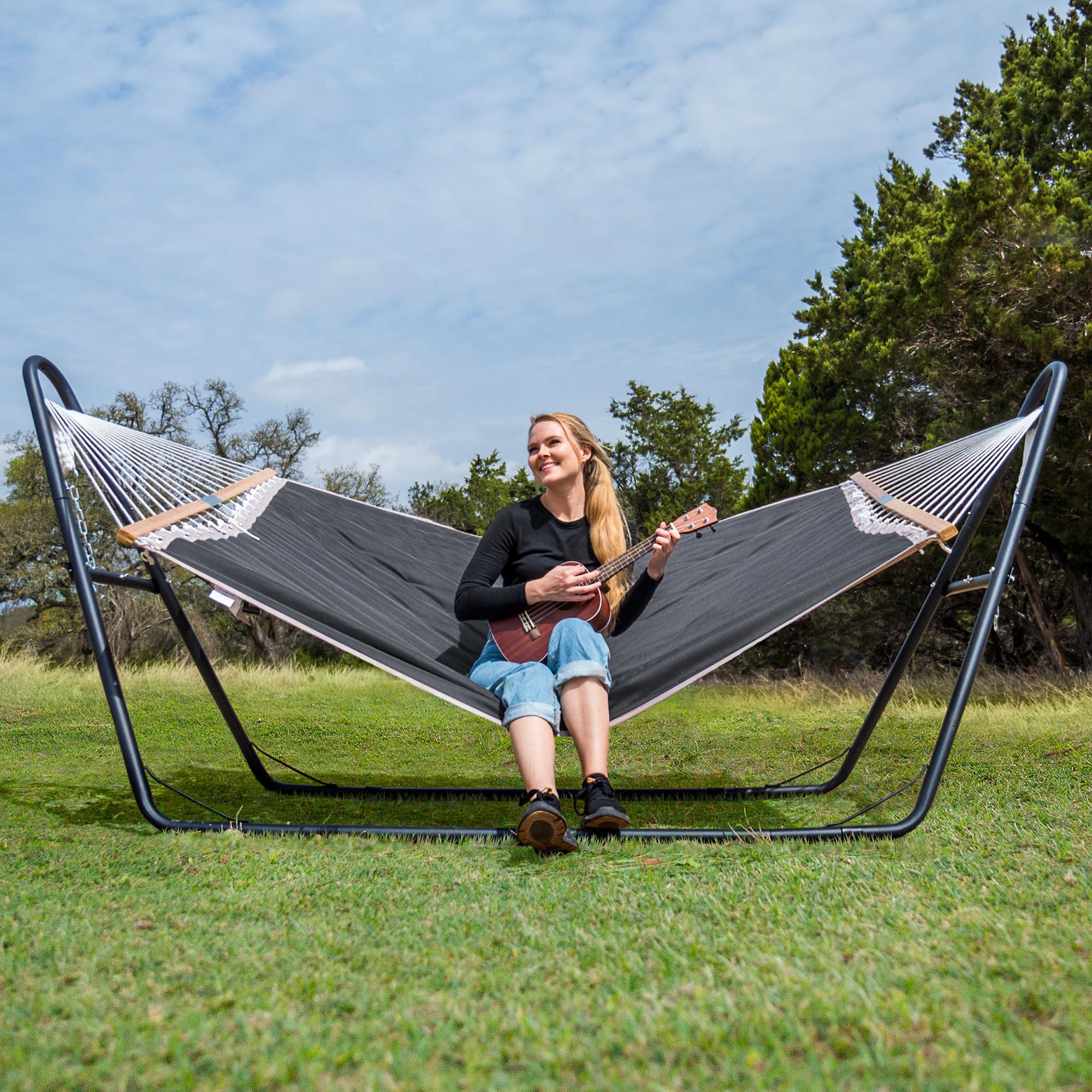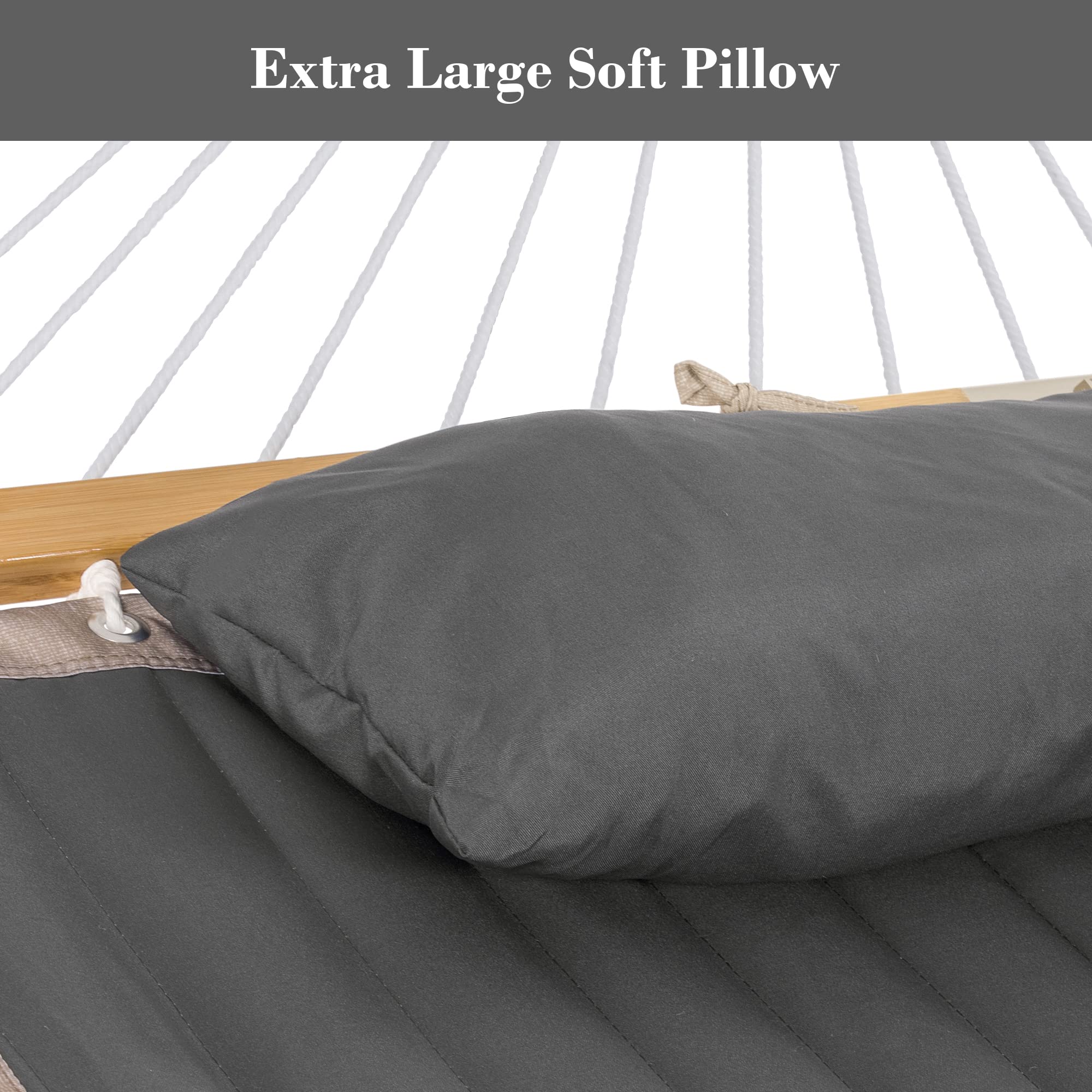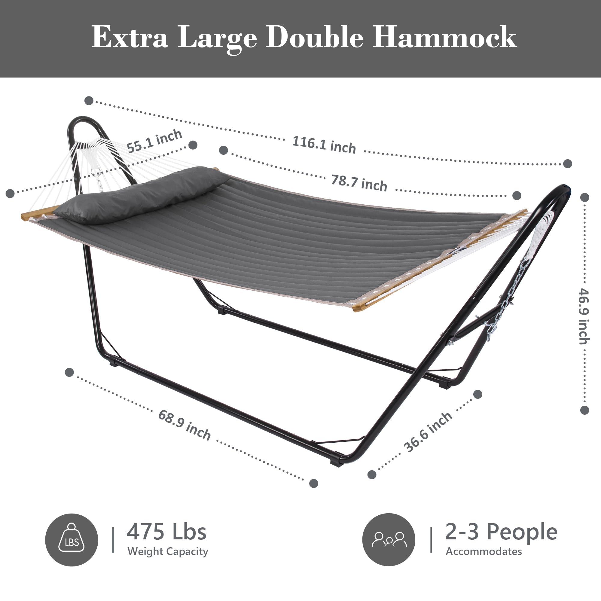 SUNCREAT Extra Large Double Hammock with 10 ft Stand Included, 475 lbs Capacity, Outdoor Heavy Duty Hammock with Large Soft Pillow, Dark Gray