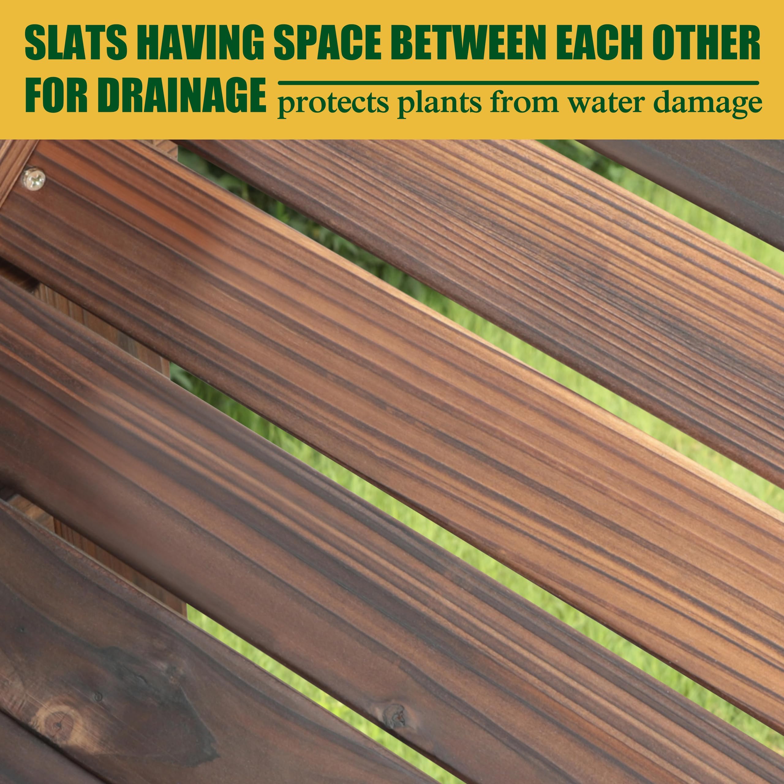 Crafted from cedar, it naturally fights decay. It's non-toxic, so your plants are safe and sound. We've even coated it with water-resistant paint. Want it to last even longer? Give it a little love with some oil seal or stain. This baby doesn’t warp easily, so it's here to stay.