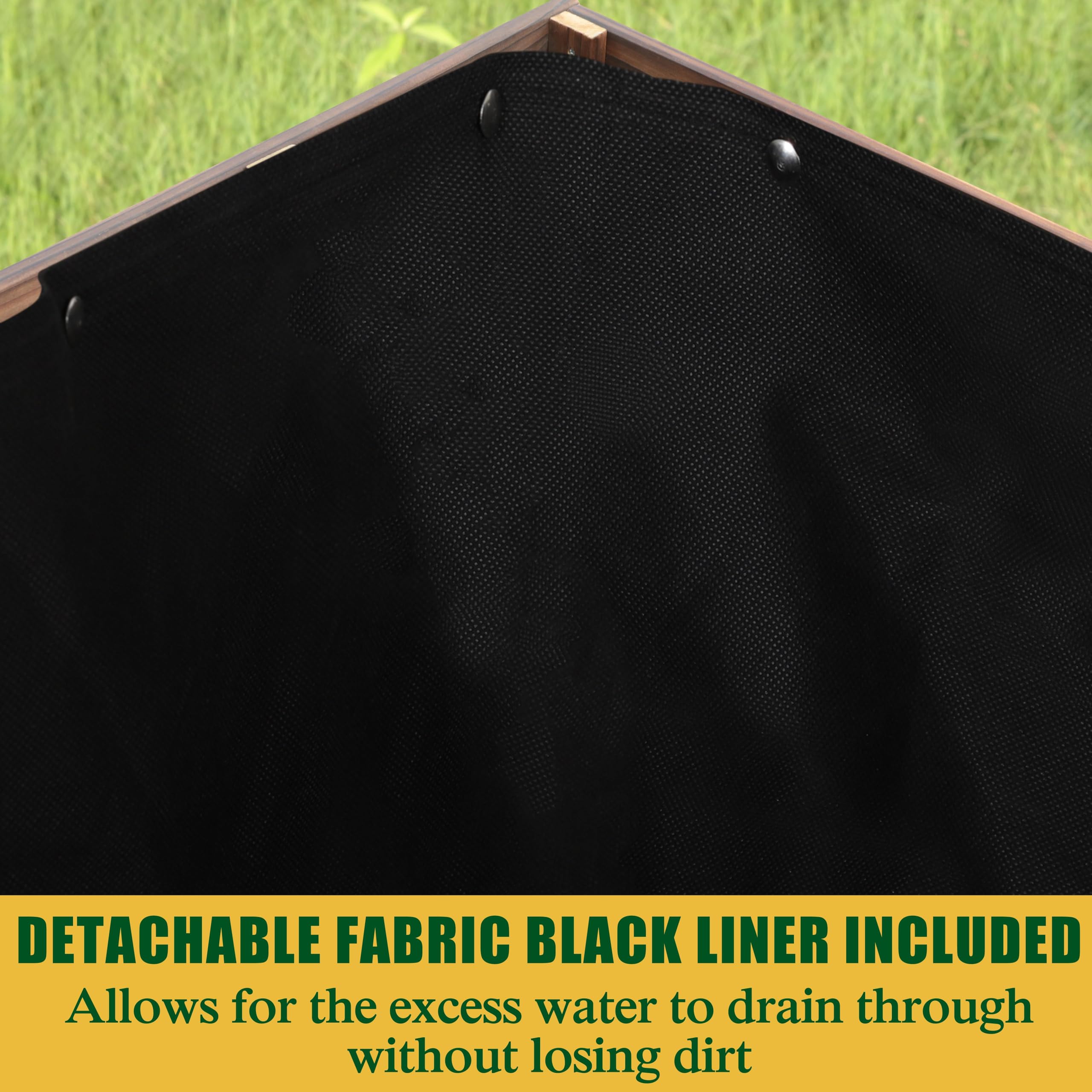 Drainage is a breeze with our unique design. The slats leave just enough room to efficiently drain excess water, preventing soil erosion. Plus, it comes with a nifty detachable black liner, which keeps the soil fluffy and ready for growing. Your root crops will thank you for it!